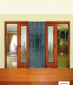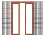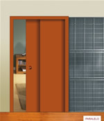 Caixilho p/ porta dupla. Este modelo está disponível em 2 espessuras e tem três alturas standardizadas sendo possível ter fechadura central. Pode ser aplicado em paredes de reboco e em gesso cartonado.